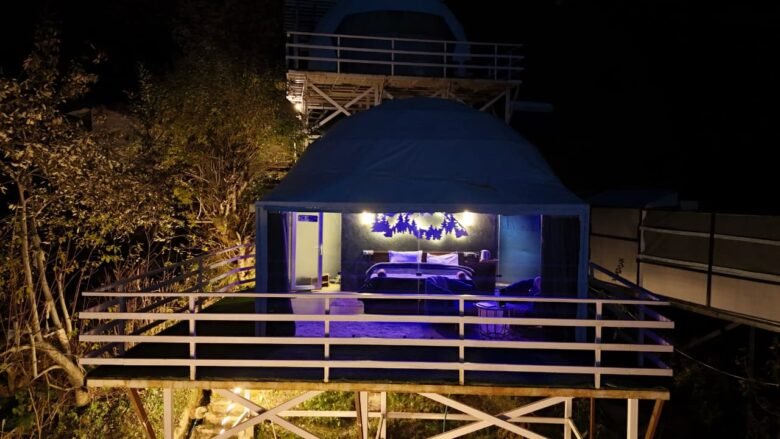 Inside, the dome features spacious, well-appointed interiors, including a comfortable sleeping area, cozy seating. Amenities include, Wi-Fi, 24*7 hot water and an en-suite bathroom with high-end fixtures. The exterior offers a peaceful outdoor balcony area, perfect for enjoying the fresh air and surrounding beauty.